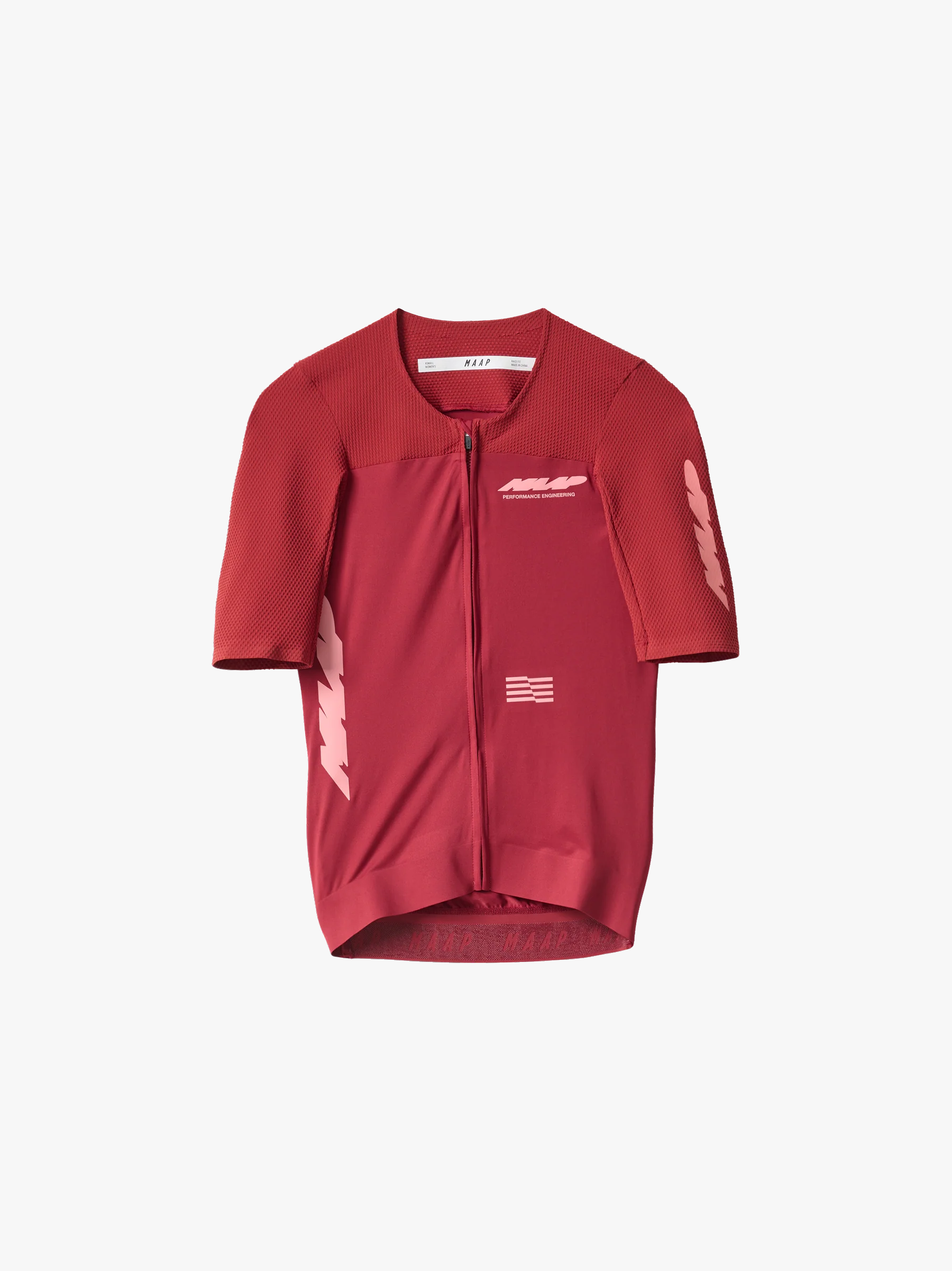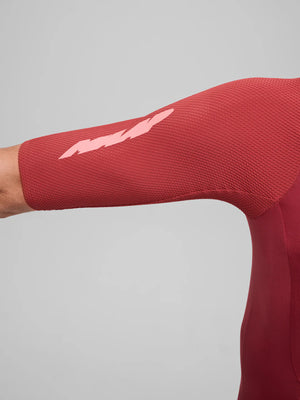 低プロファイルのネックラインとボンデッド仕上げ(襟・袖・前裾)でエアロ最適化
