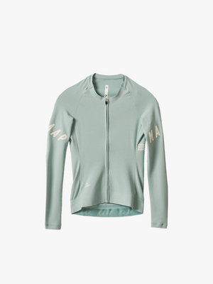 ロープロファイルな襟とシームレス系の前裾で快適性と空気抵抗を両立