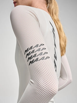 A 身頃は超ソフトなイタリア製ニットで吸湿速乾と伸縮性に優れ スリーブはMAAP Honeycomb 構造で通気と形状安定性を両立 リサイクル糸とbluesign 認証生地を採用したサステナブル設計です