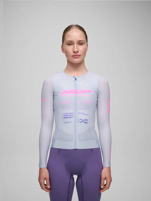 Women's Beta Pro Aero LS Jerseyは、軽量性と空力性能を高次元で両立するために設計された、レース志向のレディース長袖ジャージです。極薄のマイクロパーフォレーテッドストレッチウーブン素材と、空気抵抗の低減を意識したスリーブ構造により、高速巡航時にも効率的なエアフローを維持します。ボンデッド仕上げによるすっきりした構造が、安定感、快適性、そして第二の肌のような密着感を生み出し、暖かいコンディションでの高強度ライドに適した一着です。