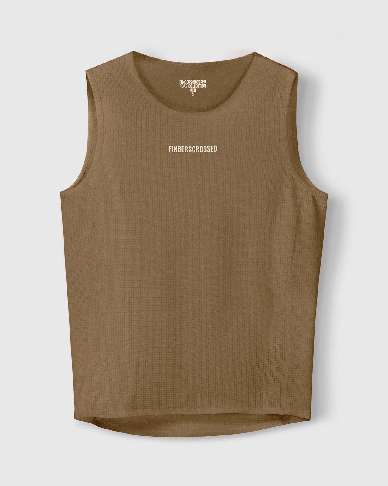 Square mesh construction instantly wicks away sweat. Highly breathable and quick-drying for a dry, full-dyed, recycled fabric. Antique Cream color perfectly matches the jersey. Bonded neckline and hem eliminate unevenness for zero discomfort under the jersey. Lightweight 4-way stretch. Logo transfer print blends into the skin for a comfortable fit that doesn't interfere with pedaling. Minimal placement under the neck for a subtle statement when riding.