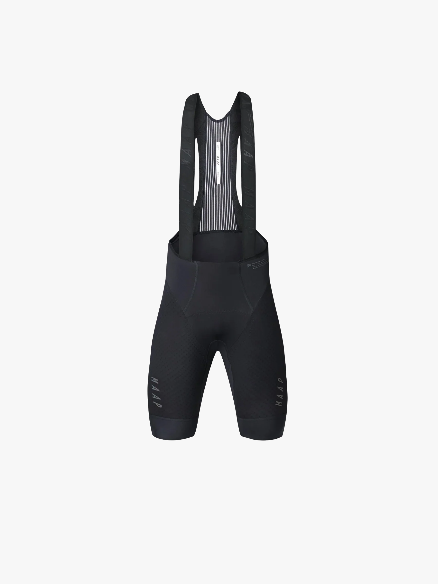 MAAP's unique 3D thermoformed chamois. Laser-cut ventilation holes on the chamois. Highly stretchy and shape-retaining leg panels. Smooth stitching. Ergonomic construction for controlled pressure points. Mesh panel on the back. Reflective logo tag. MAAP's unique silicone grip on the hem.
