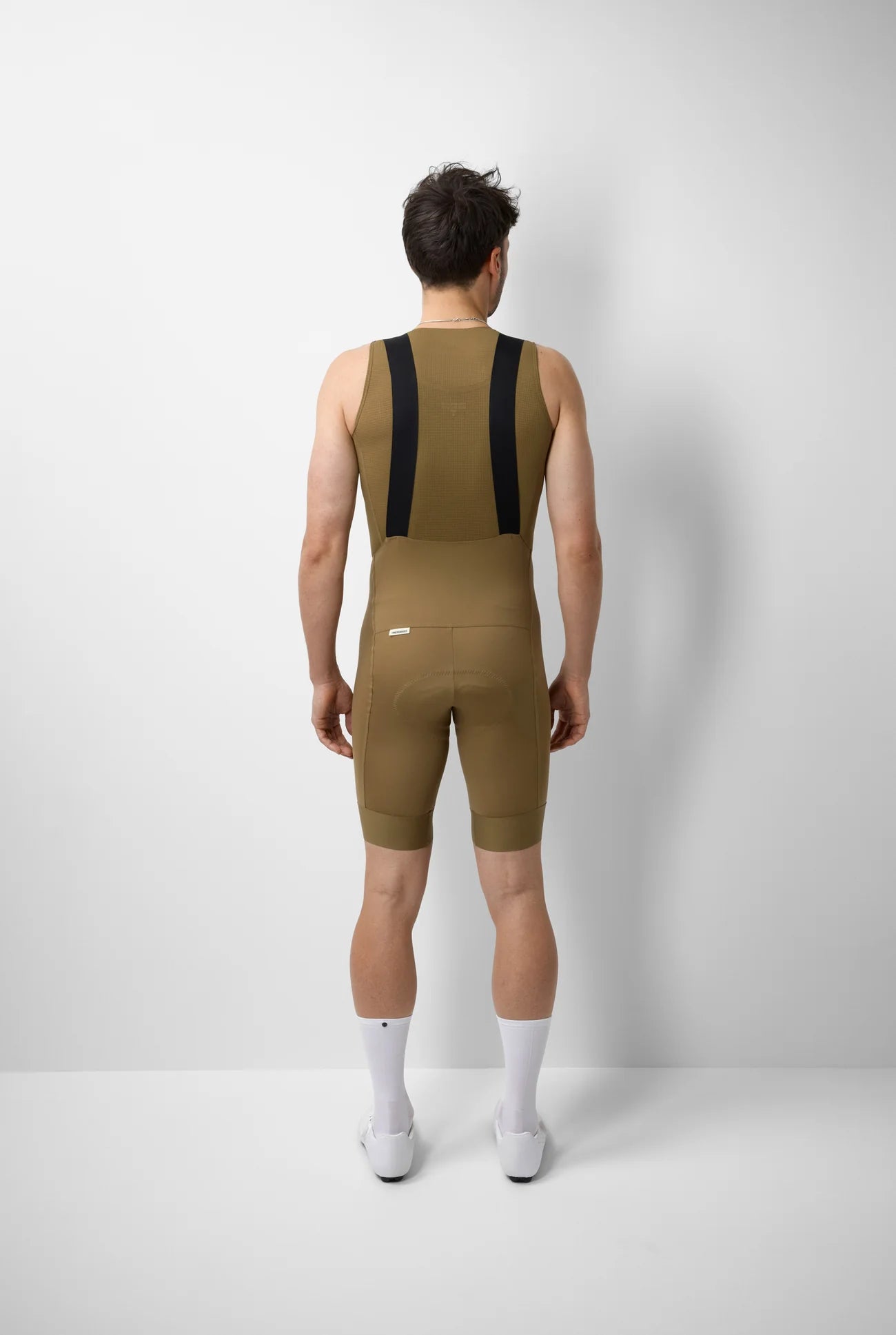 軽量なイタリア製4-Wayストレッチ生地がペダリングに追従し、適度なコンプレッションでフォーム維持をサポート。吸汗速乾・高通気で蒸れを抑え、背面メッシュストラップが熱を逃がしつつビブを安定固定します。