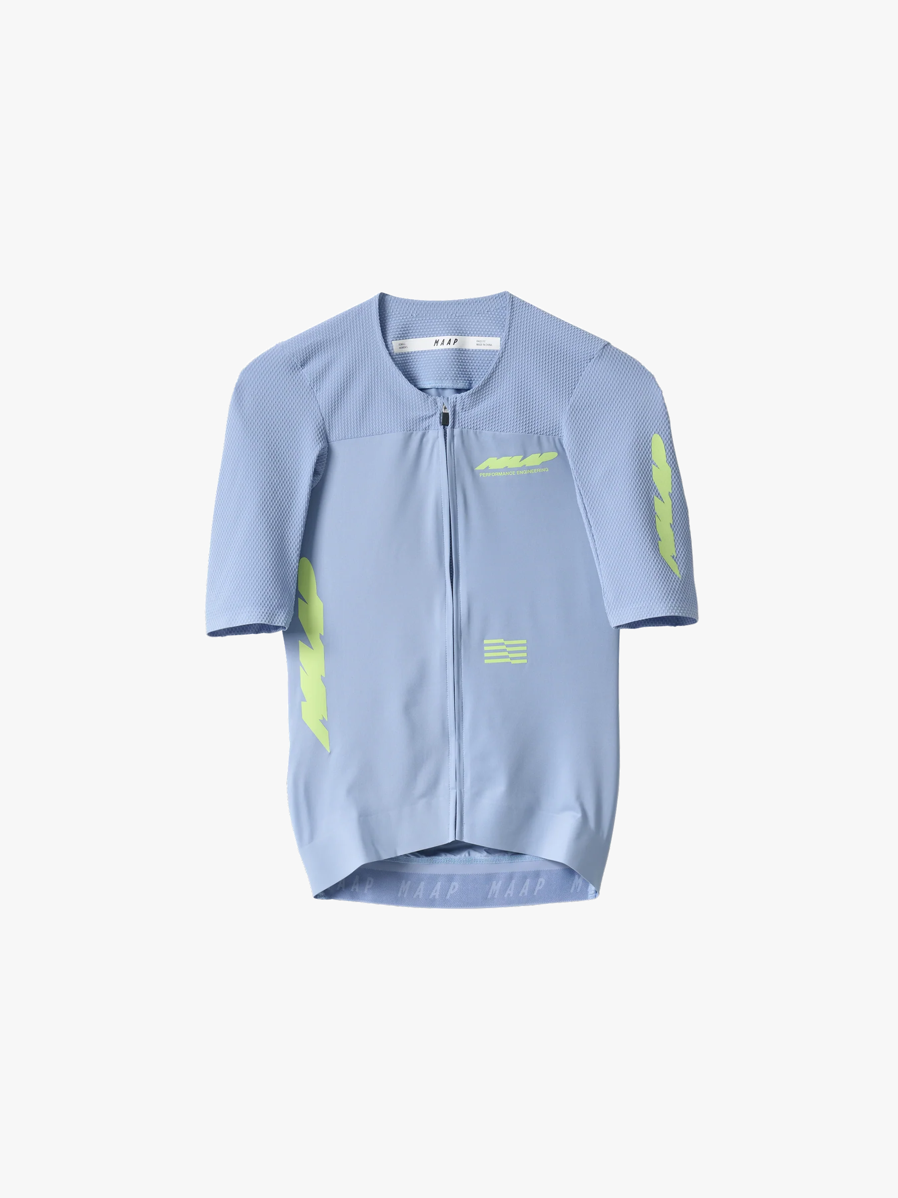 低プロファイルのネックラインとボンデッド仕上げ(襟・袖・前裾)でエアロ最適化