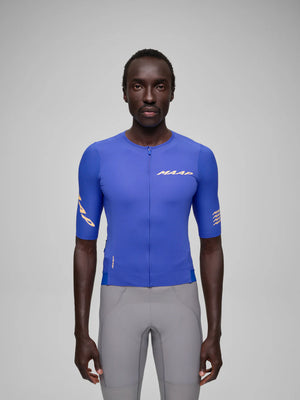 A 身頃は超ソフトなイタリア製ニットで吸湿速乾と伸縮性に優れ スリーブはMAAP Honeycomb 構造で通気性と形状安定性を両立 リサイクル糸とbluesign 認証生地を採用しています
