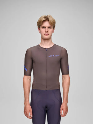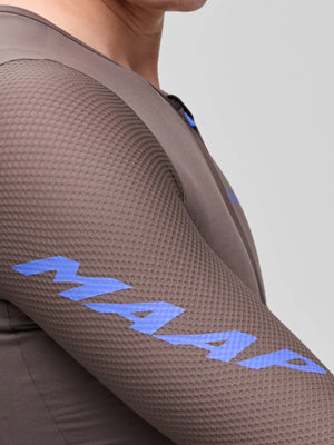 A 身頃は超ソフトなイタリア製ニットで吸湿速乾と伸縮性に優れ スリーブはMAAP Honeycomb 構造で通気性と形状安定性を両立 リサイクル糸とbluesign 認証生地を採用しています