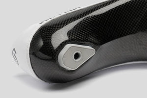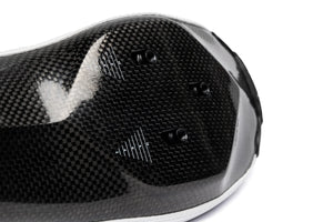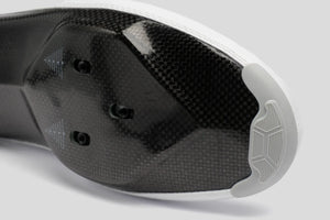 独自に開発した自社製カーボンソールは、超高剛性。その剛性は、適用されるカーボン素材や製造工程で連続したカーボンファイバーのみを使用することにこだわった結果です。その剛性や軽量性を含めた特性が、トラックレース、特に力のある選手が自分の力を直接前に出す感覚を味わえる競輪で、AIRが人気を博している理由です。ULTIMATE AIRのカーボンソールは、従来の AIR からさらにレベルアップし、重量を最適化する特殊なレイアップを施しています。
